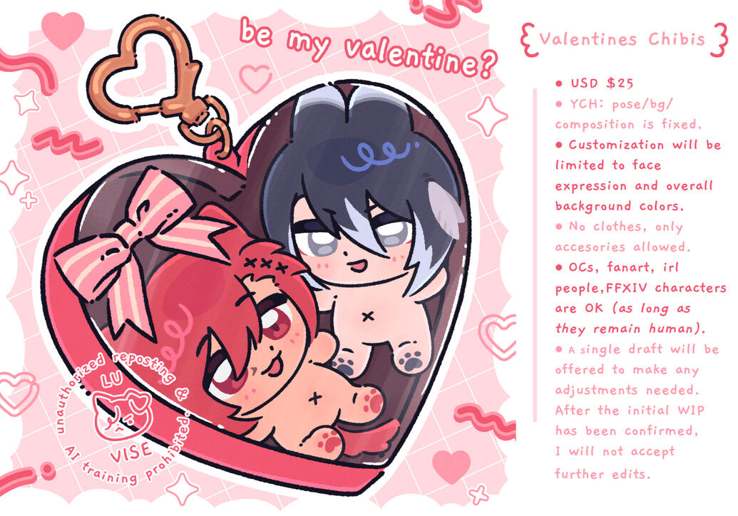 • General Idea Description: (You can provide a text description and/or a link to reference images. Visual references regarding pose / expression / outfit / accessories backgrounds are preferred but not mandatory. If no clear idea of the prompt, you can give me a personality description for all characters involved.)• Do you intend to use this commission for any commercial purposes?: (Yes / No / Unsure if it qualifies as commercial use.)